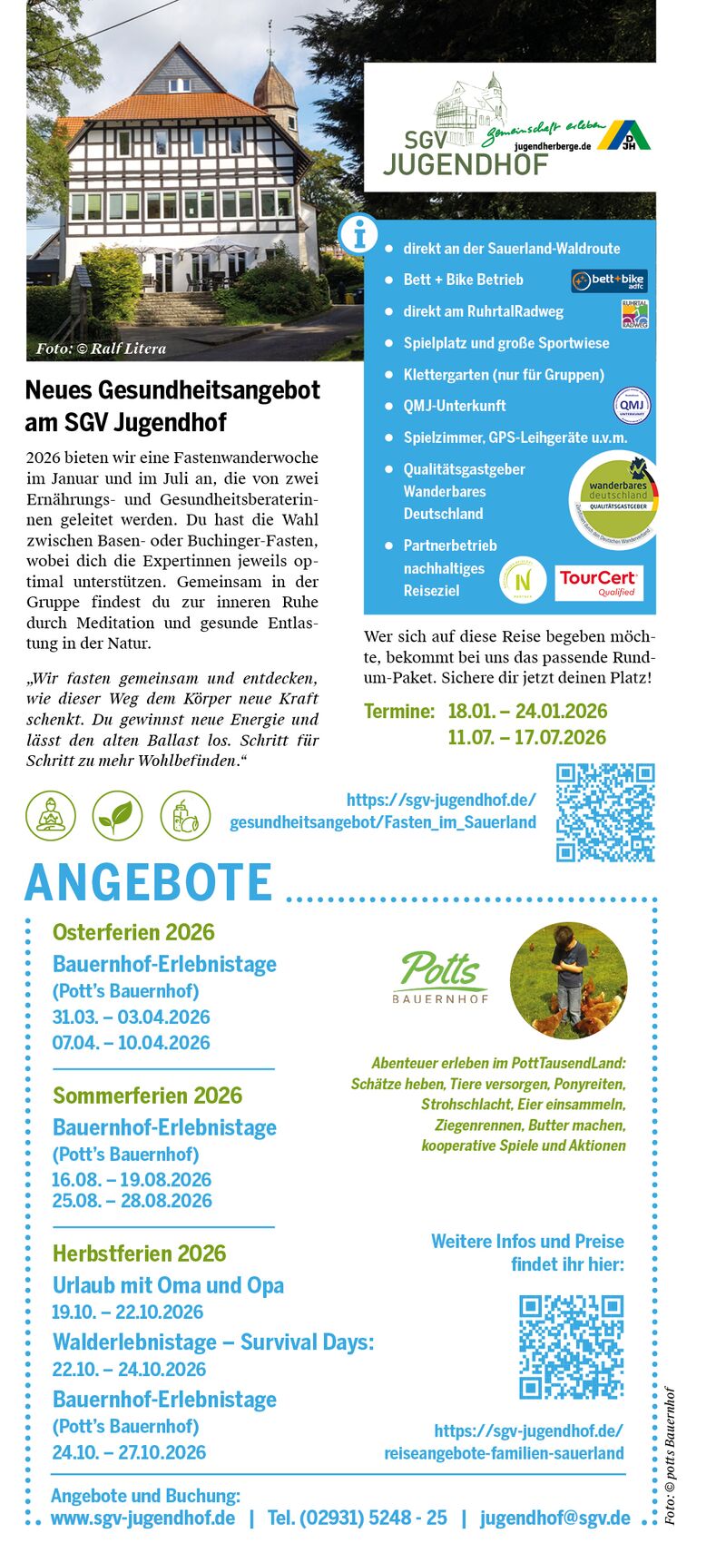 Weitere Angebote unserer Jugendherberge findet ihr auf sgv-jugendhof.de